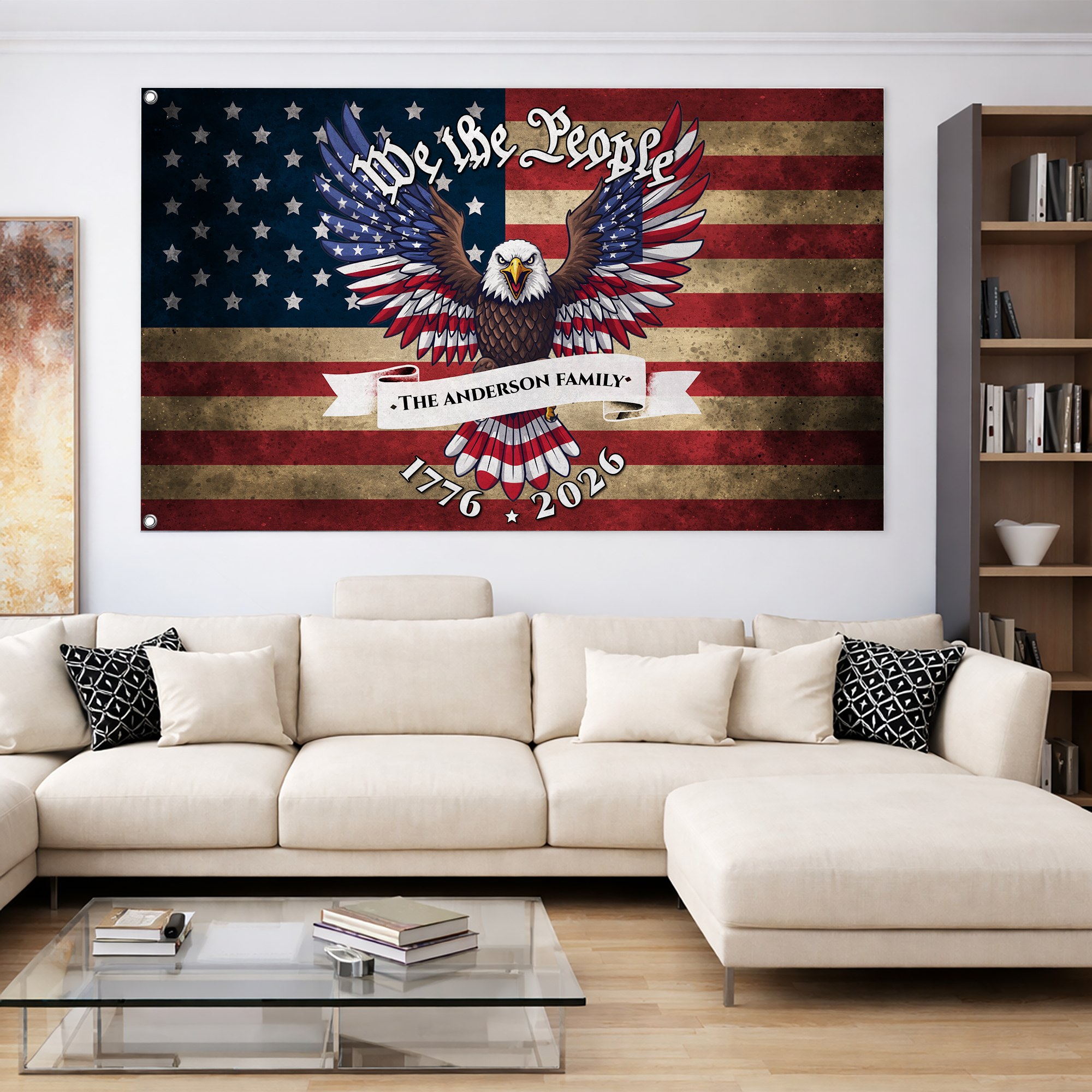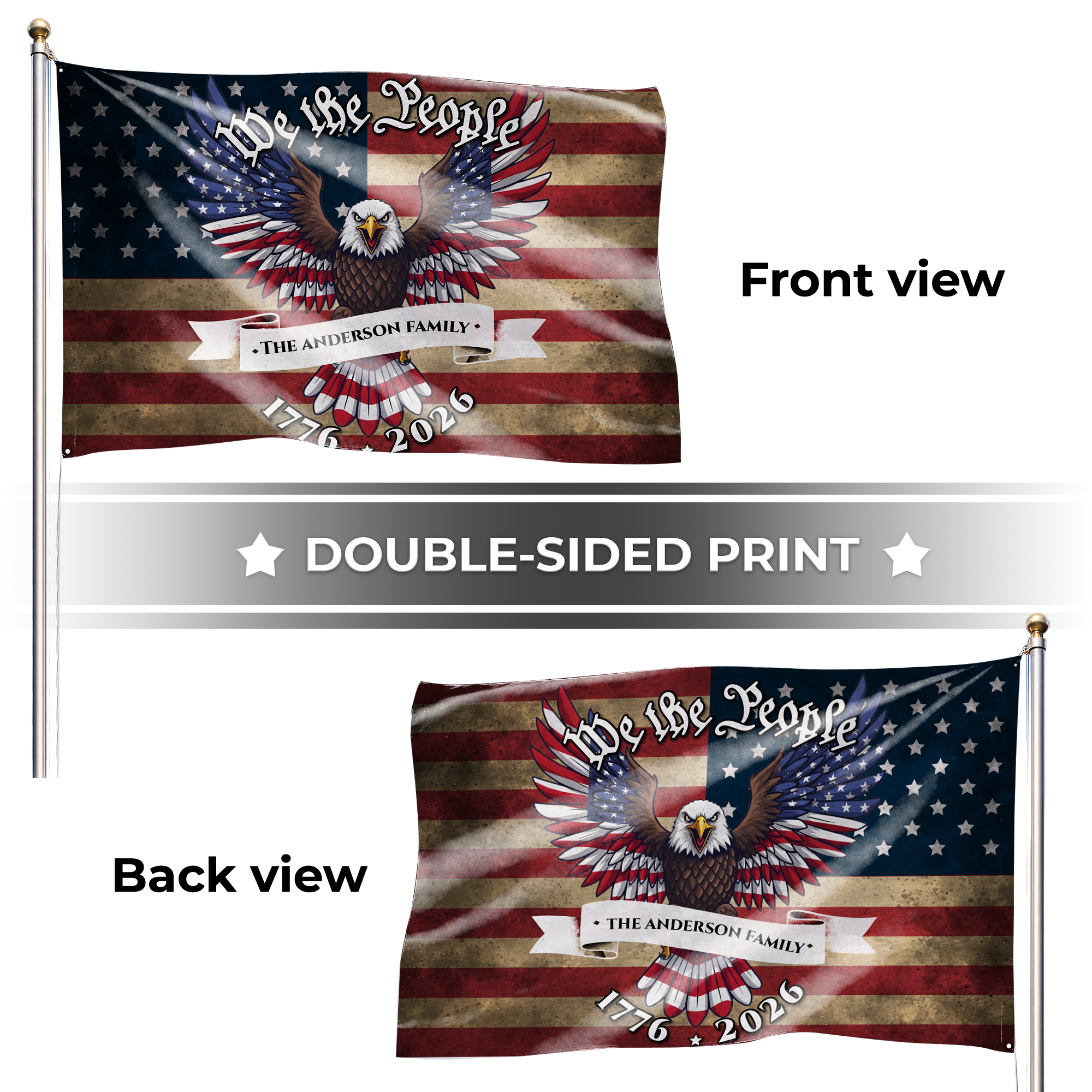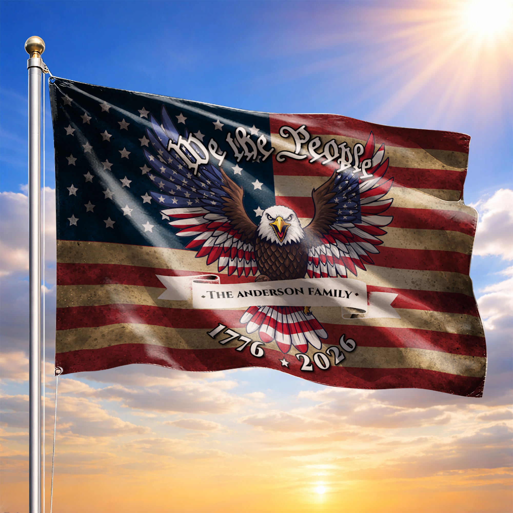 Showcase your family's unwavering patriotism. Customize your "We The People" eagle flag today and let your American spirit fly high!