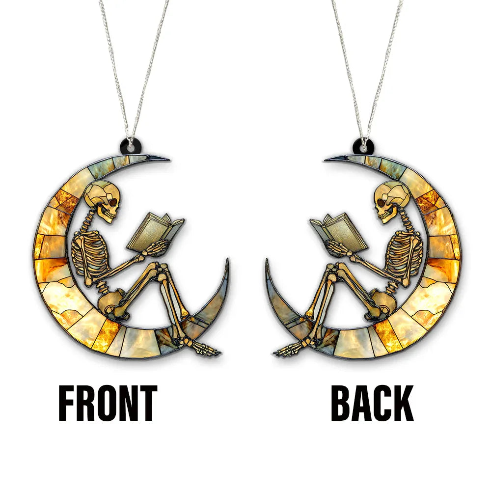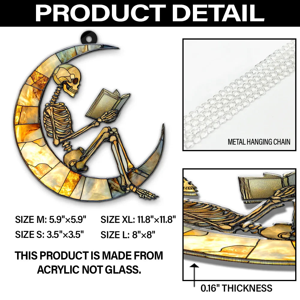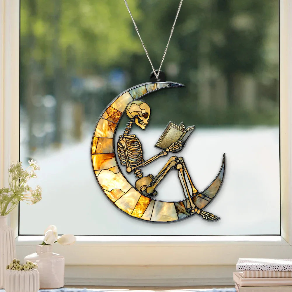 Skeleton Suncatcher, Reading Skeleton Ornament, Book Lover Decor,Halloween Suncatcher,Unique Skeleton Art,Skull Reading Decor,Halloween Gift