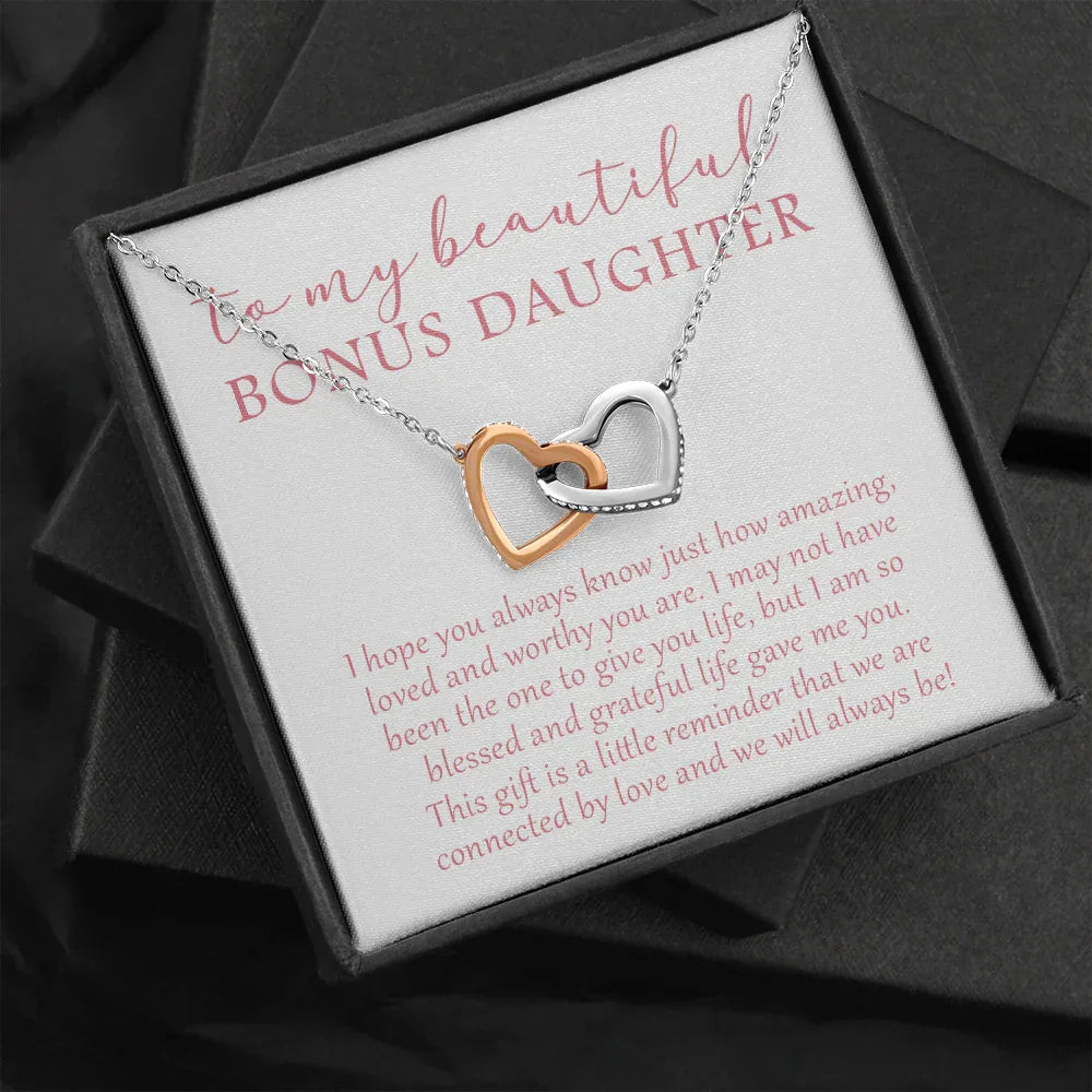 To My Beautiful Bonus Daughter - We Will Always Be - Interlocking Hearts Necklace SO174V