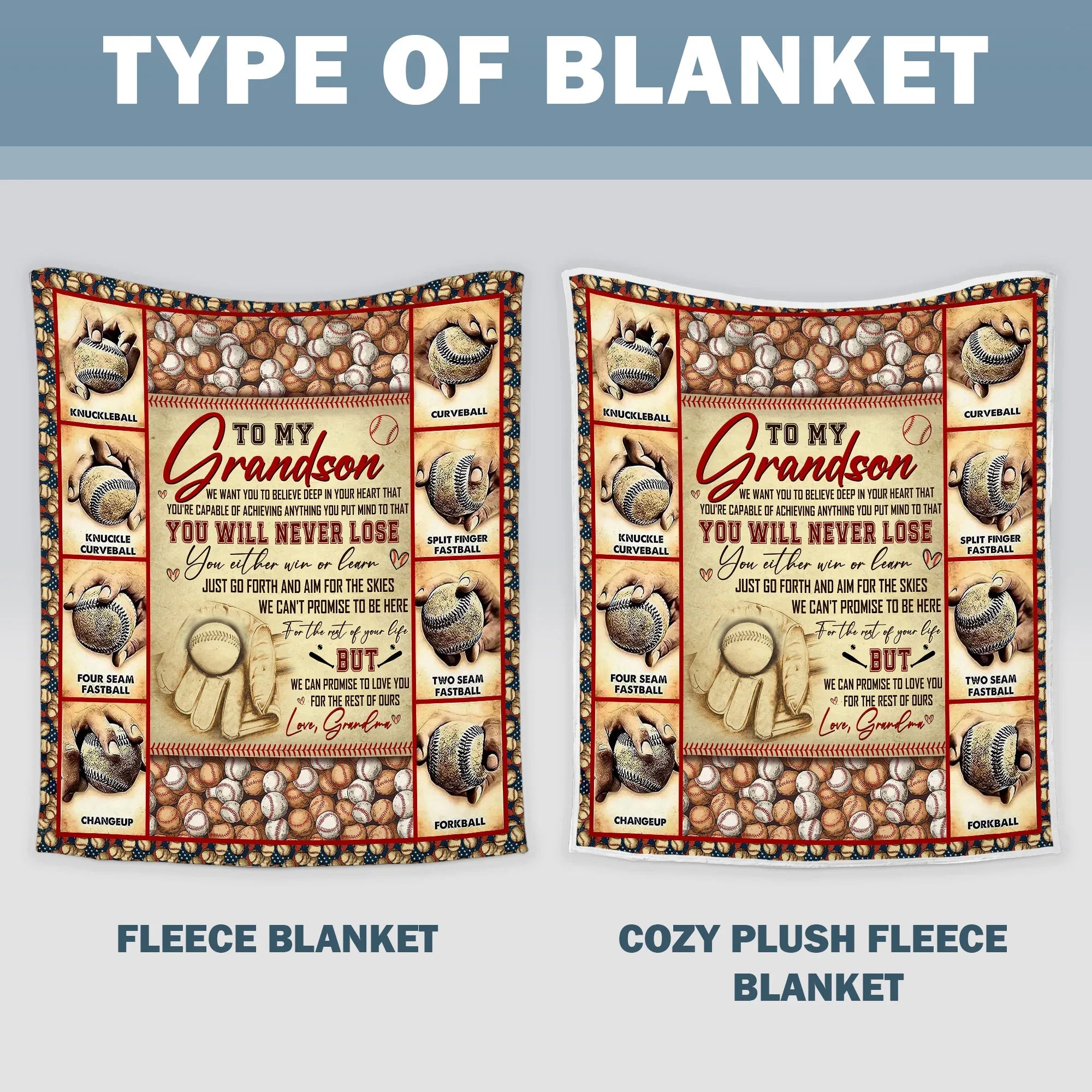 To My Grandson Baseball Blanket - Gift For Grandson From Grandma