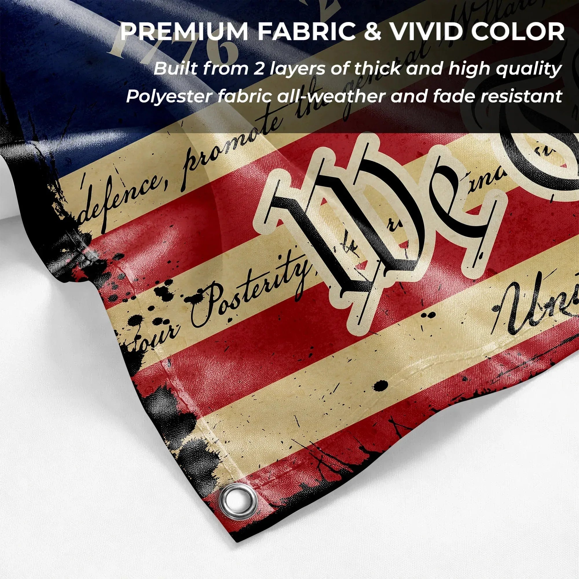 Crafted for versatility and longevity, this premium flag boasts a unique vintage, distressed aesthetic. As seen in the images, it is perfectly suited for both outdoor flagpole display and indoor living room decoration. The vibrant colors and high-quality fabric ensure that your patriotic message remains bold and clear, no matter where you choose to hang it.